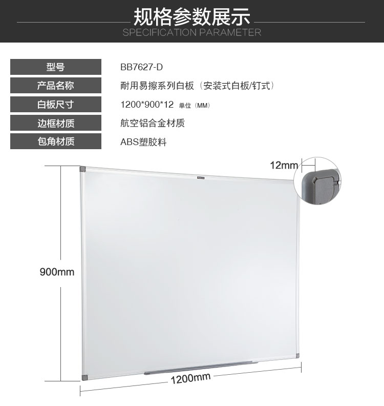 齊心 BB1290 通用易擦白板 120*90CM 白